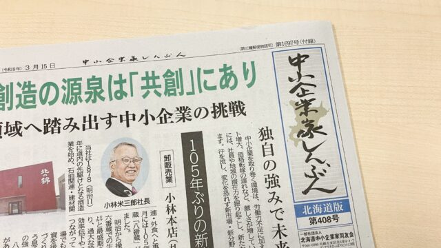 中小企業家しんぶん(北海道版 第408号 2026/03/15 日曜日)掲載のお知らせ