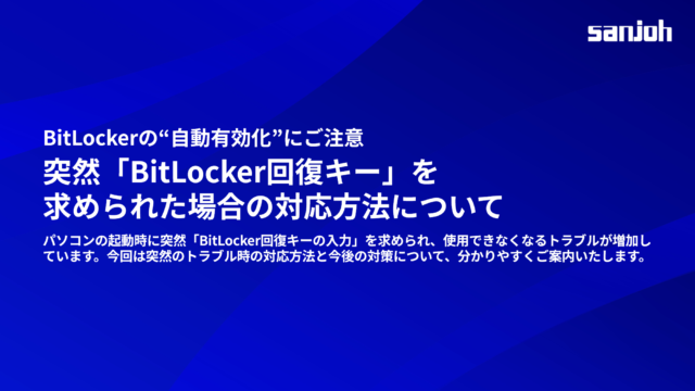 近年、パソコンの起動時に突然「BitLocker回復キーの入力」を求められ、使用できなくなるトラブルが増えています。特に、テレワークの普及によりパソコンの持ち出しが増えたことで、セキュリティ対策として…