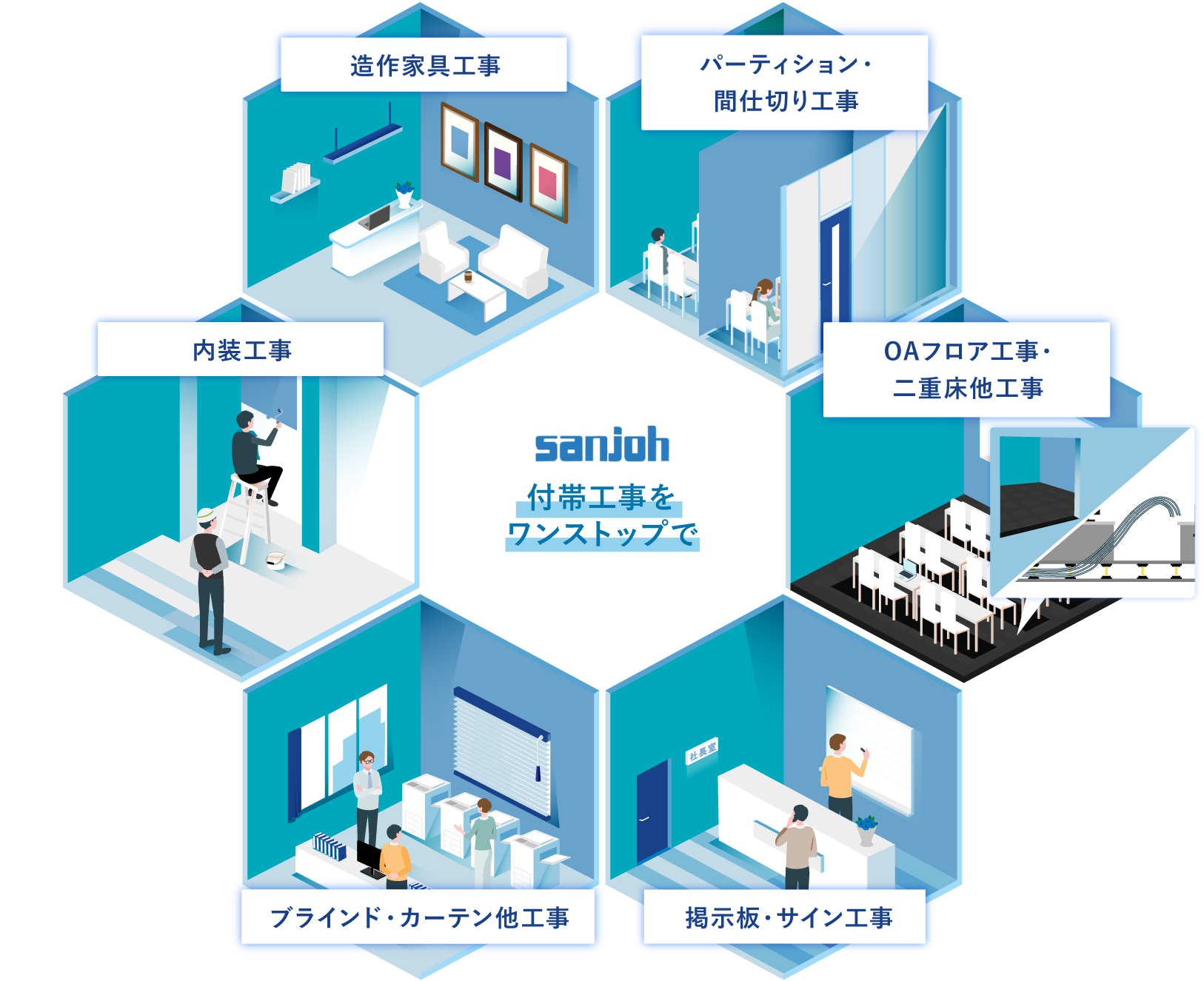 新築・改築等の建設工事において、内装・雑工事を中心に様々な付帯工事を行います。