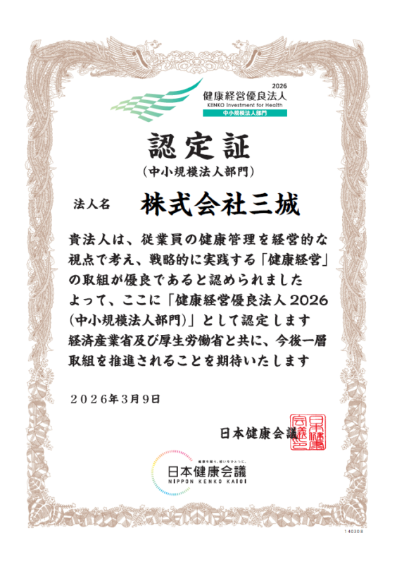 このたび、経済産業省が主導する「健康経営優良法人認定制度」において、「健康経営優良法人 2026(中小規模法人部門)」に認定されましたのでご報告いたします。