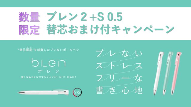 ZEBRA 数量限定ブレン2+S 替芯おまけ付キャンペーン <ブレン2+Sとは?> ゼブラ独自技術“筆記振動の制御”でストレスを軽減し、 濃くなめらかな書き味も魅力のボールペンシリーズ『bl…
