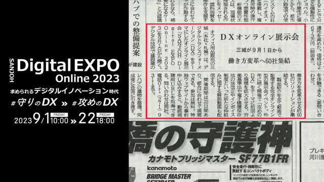 北海道建設新聞(日刊 2023/8/24 木曜日)に掲載されました!【SANJOH Digital EXPO Online 2023】