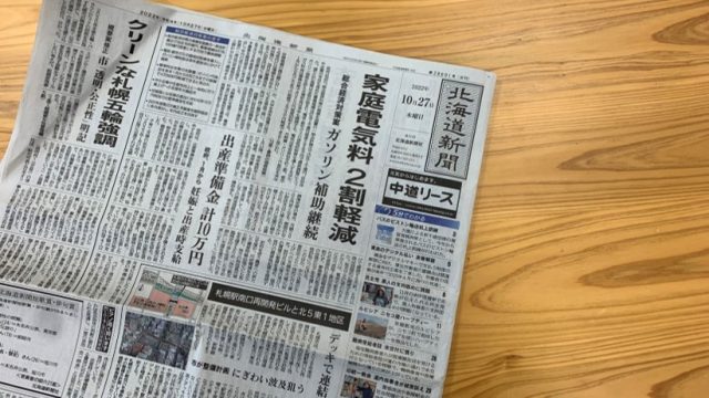 北海道新聞(第28691号 日刊 2022/10/27 木曜日)に掲載されました!