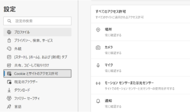 3. [Cookie とサイトのアクセス許可]をスリックする