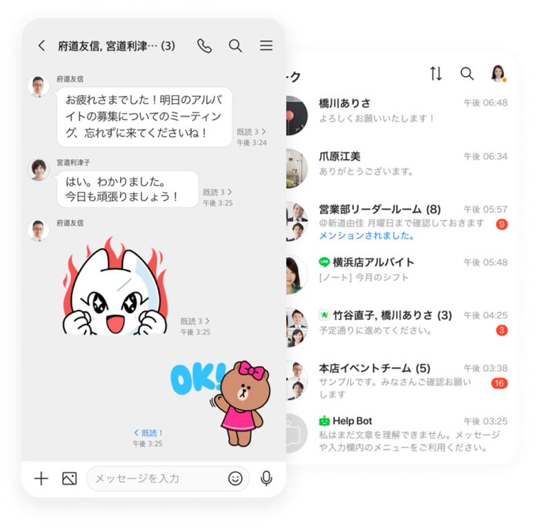 情報や予定を共有しあって活動する、組織・チームのための多機能コミュニケーションツールです。無料アプリ「LINE」のユーザーとも直接やりとりすることができる唯一のビジネスチャットツールで、企業や企業内プロジェクト・特定の活動をする団体などに最適です。