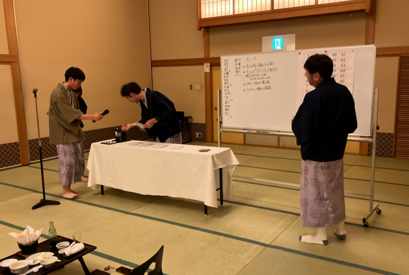 食事中、隣の宴会場からカラオケのおどるぽんぽこりんが大音量で聞こえてきて、