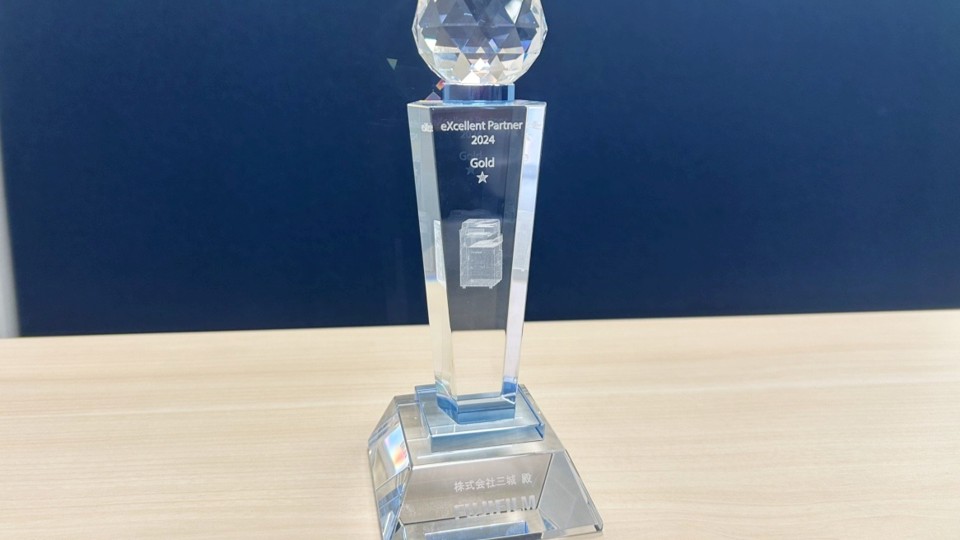 「eXcellent Partner」とは、富士フイルムビジネスイノベーションジャパン株式会社 様が我々販売店と共に更なる成長へチャレンジするというプログラムです。販売店は複合機・プリンターの販売実績がポイントになり、ポイントに応じた表彰をして頂きます。