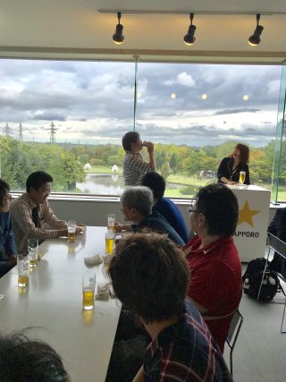 途中に立ち寄った千歳のサッポロビール北海道工場にて、「ビール工場見学ツアー」に参加し、製造過程を学び、最後に出来立てのビールを2杯も飲み、もうすでにほろ酔い気分を通り越し、気分は最高潮!!!!!
