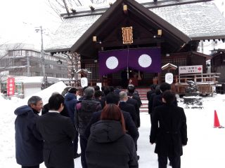 社長を筆頭に全員、ちゃんと並んでお参りします♦・。◊