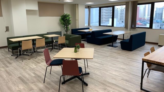 先日、当社ビル5FにリフレッシュルームがOPENしました! 社員が昼食を食べたり、仕事の合間に一息ついたり、打ち合わせに使用したり…。 写真は昼食時の1コマ。リラックス…
