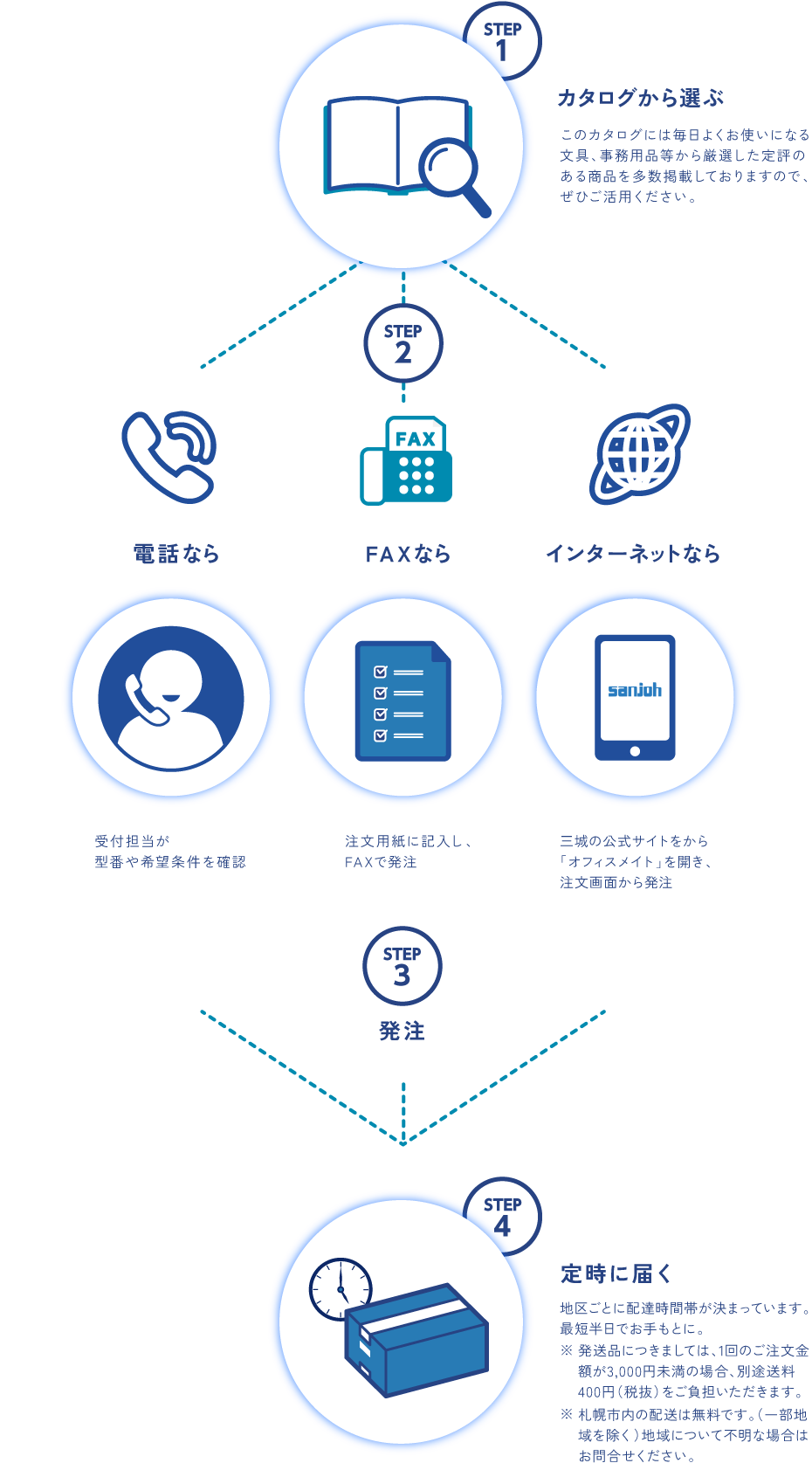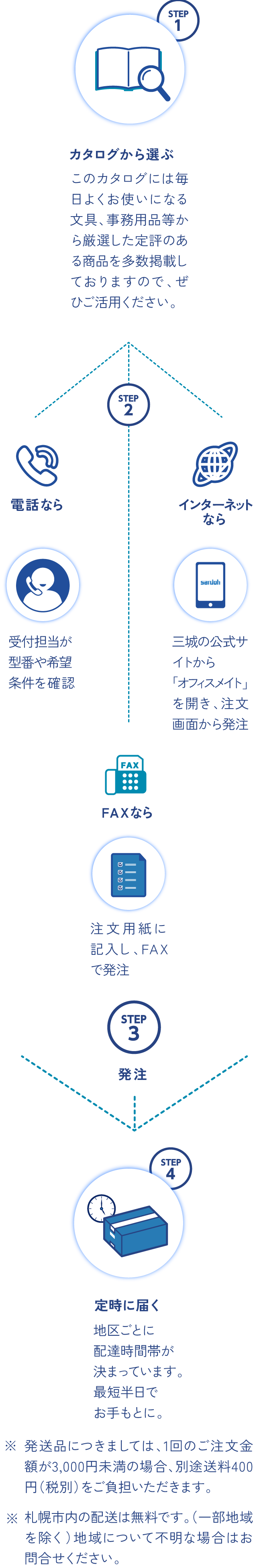 ※ 2 ご注文金額が合計3,000円未満の場合は、別途送料400円(税抜)がかかります。